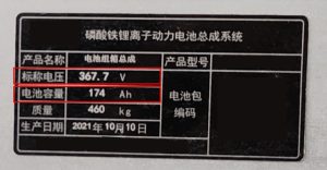 新能源汽車電池銘牌(圖3.1)上會有標稱電壓和電池容量,標稱電壓指電池包在正常工作中的電壓值,單位福特(V);電池容量指的是在一定條件下(放電率、溫度、終止電壓等)電池放出的電量,單位安時(AH)。1AH表示電池以1A的電流放電時可以持續1小時。